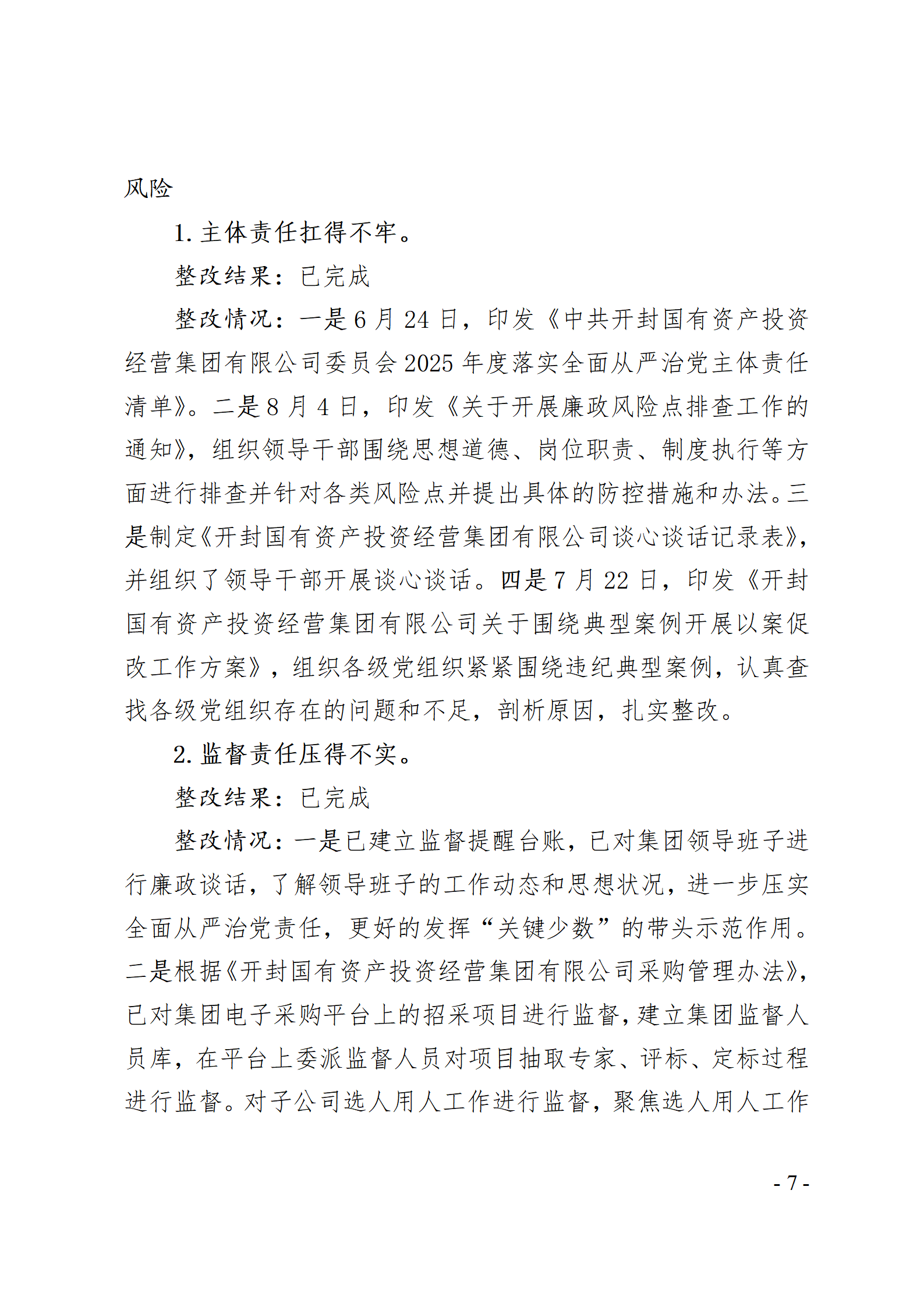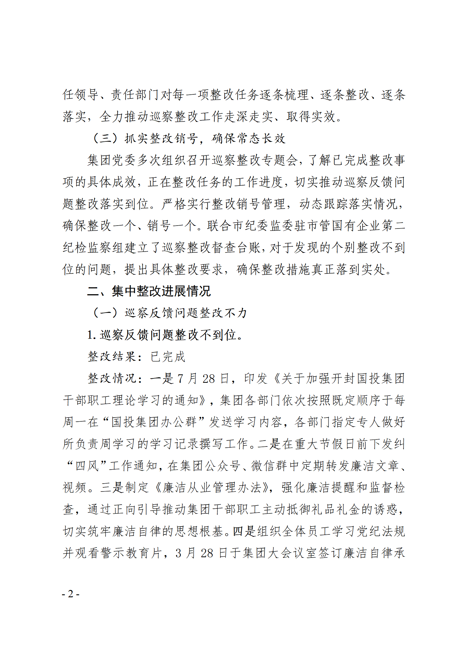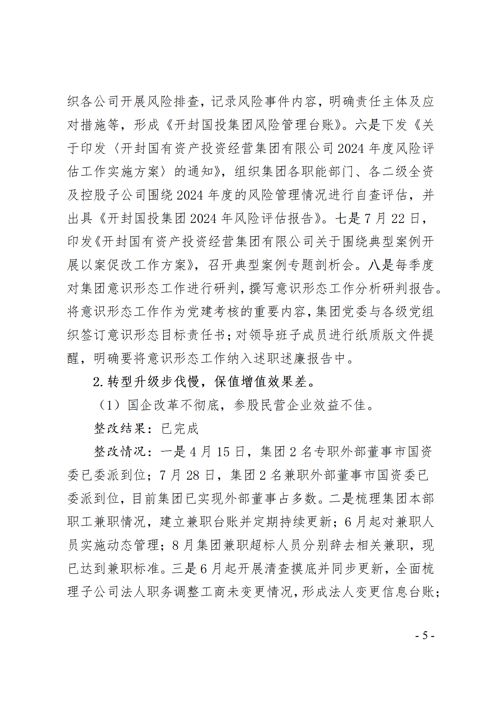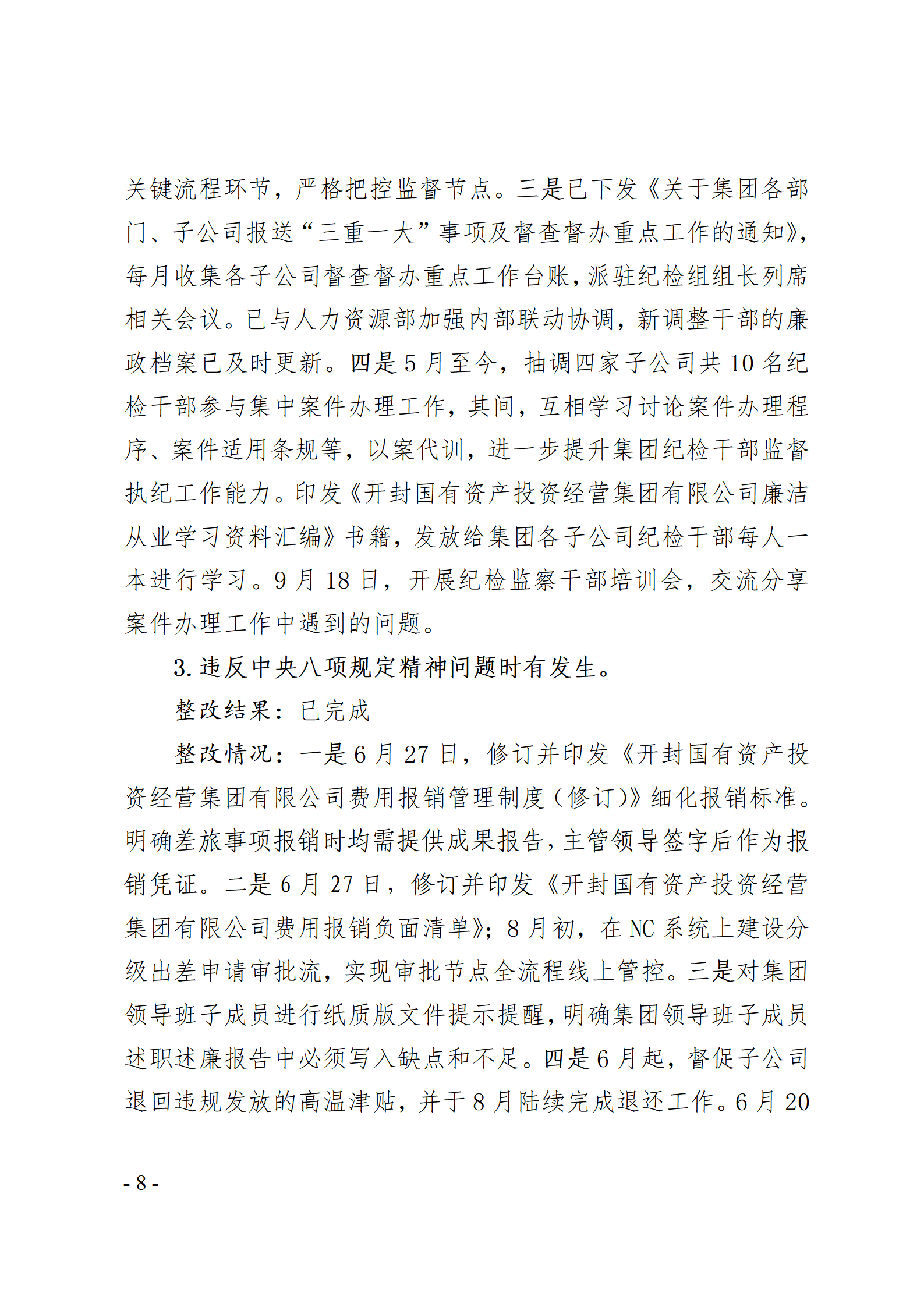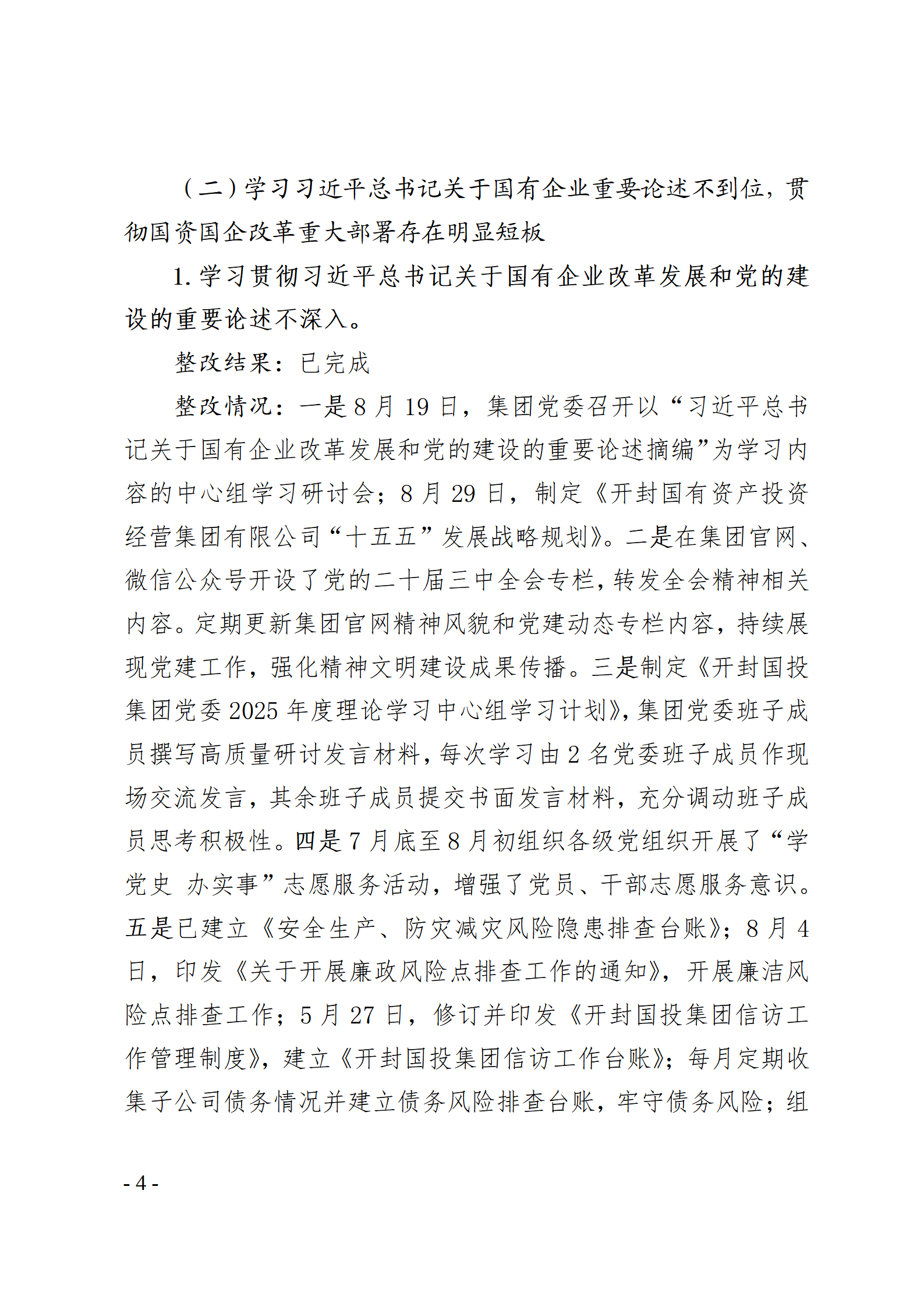 開封國有資產投資經營集團有限公司黨委關于巡察整改情況的通報