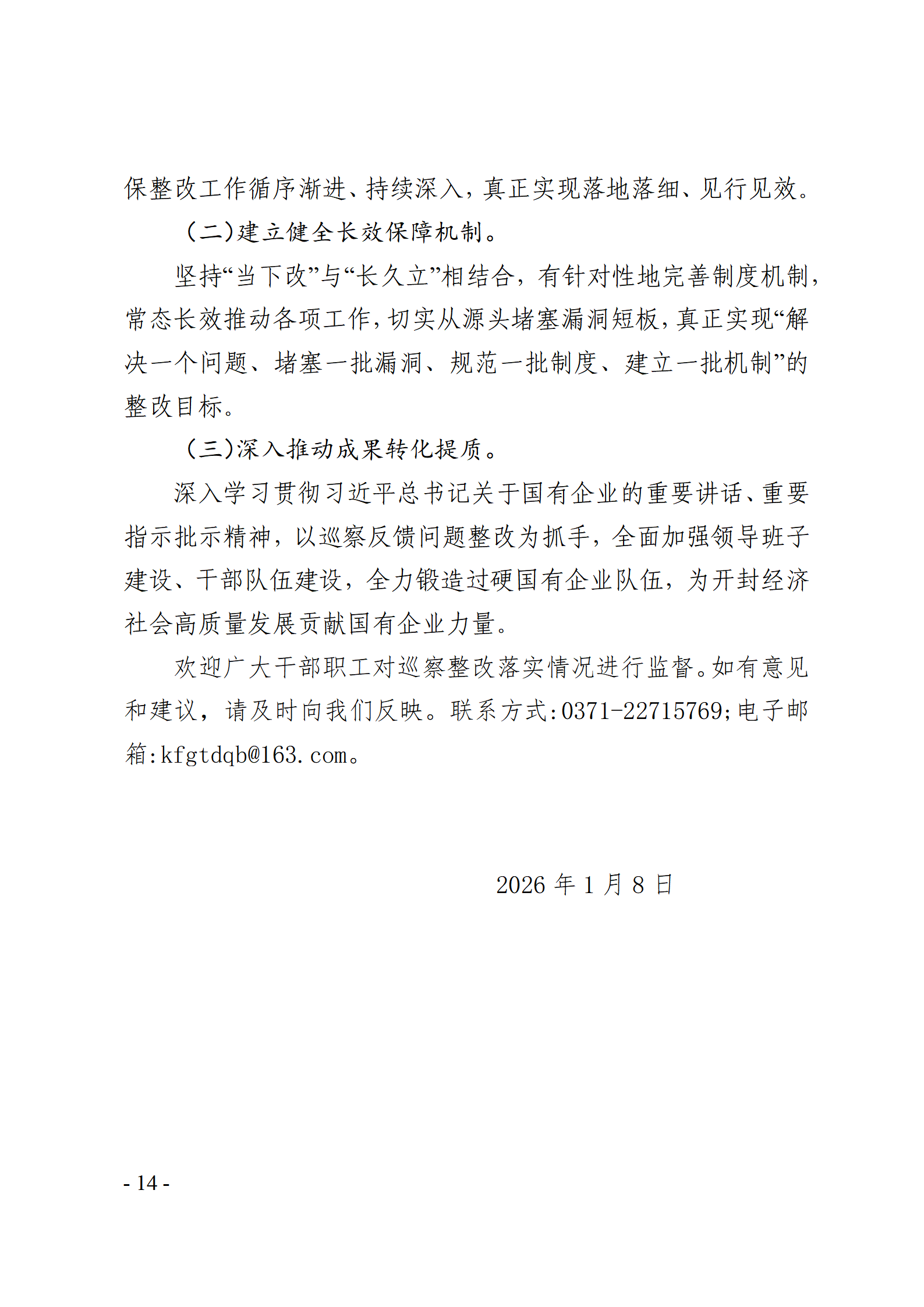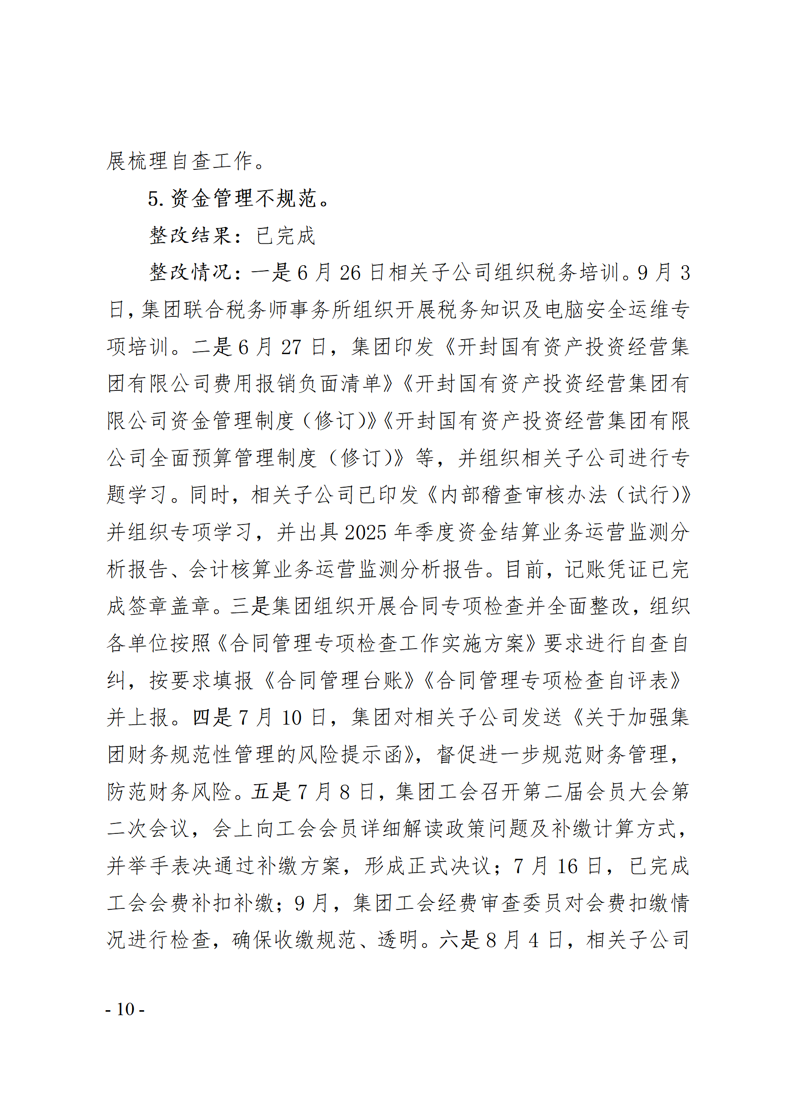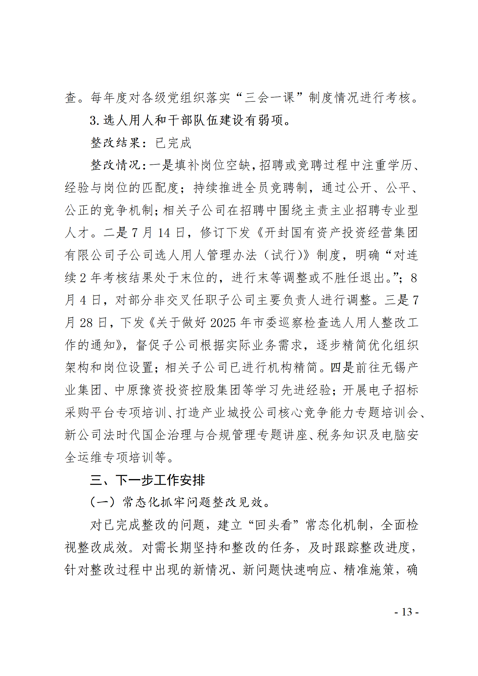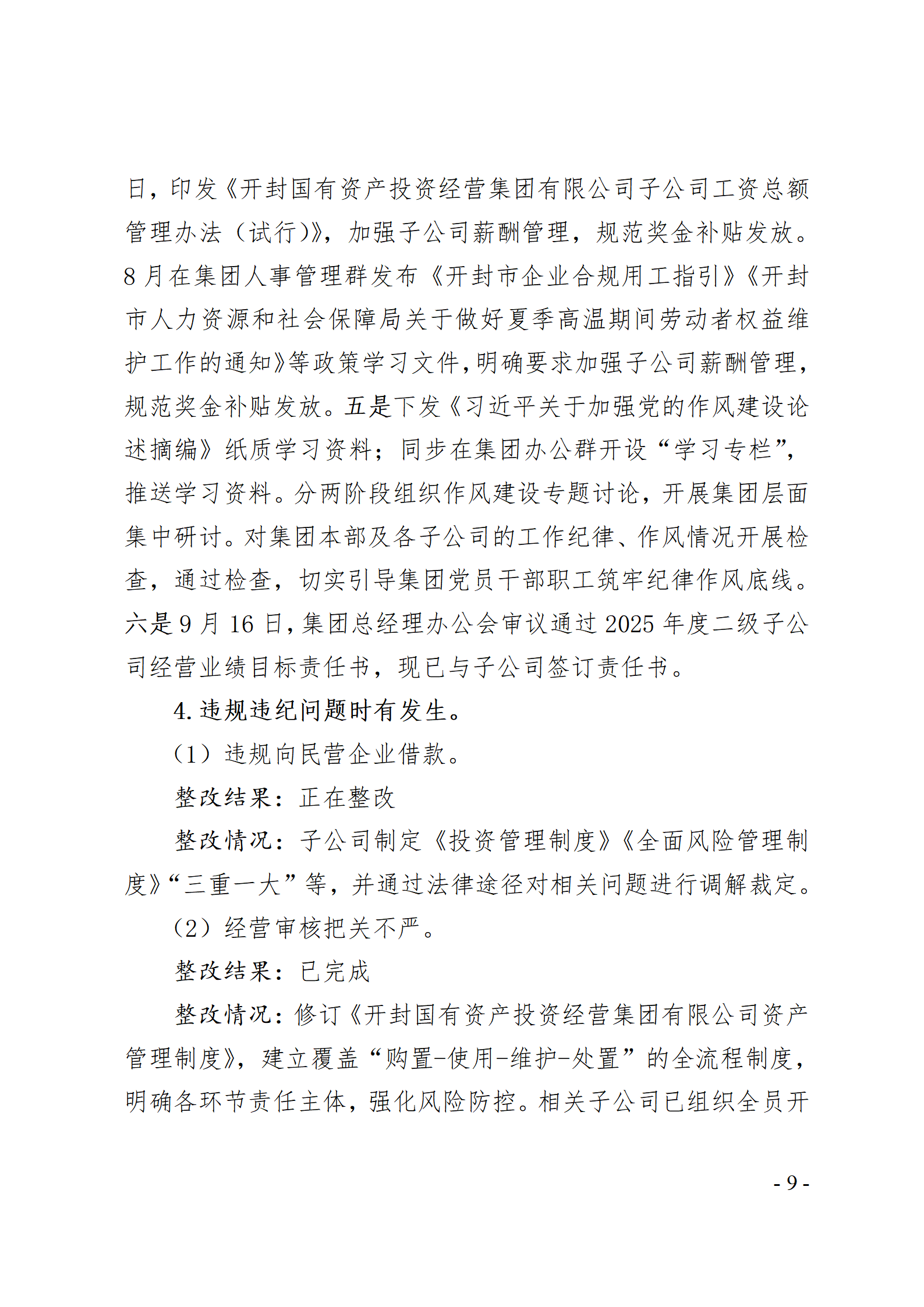 開封國有資產投資經營集團有限公司黨委關于巡察整改情況的通報