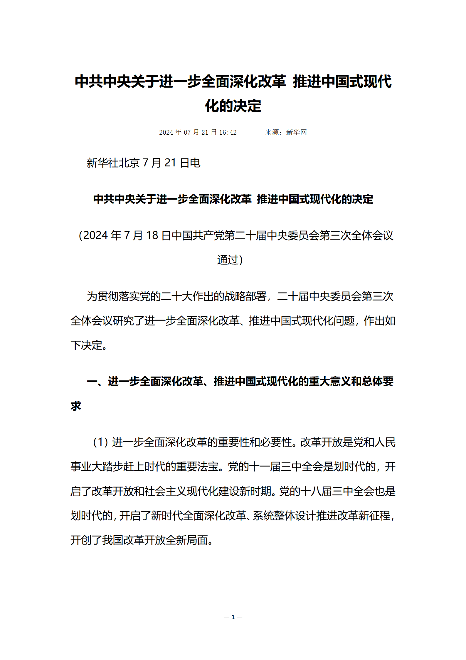 中共中央關(guān)于進一步全面深化改革 推進中國式現(xiàn)代化的決定