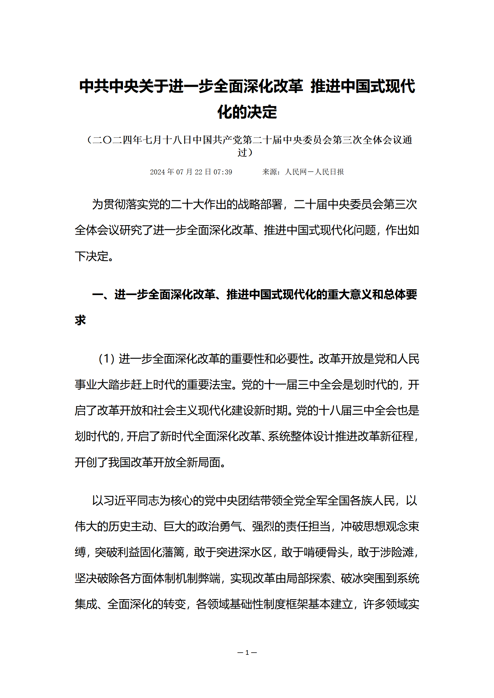 中共中央關(guān)于進(jìn)一步全面深化改革 推進(jìn)中國式現(xiàn)代化的決定